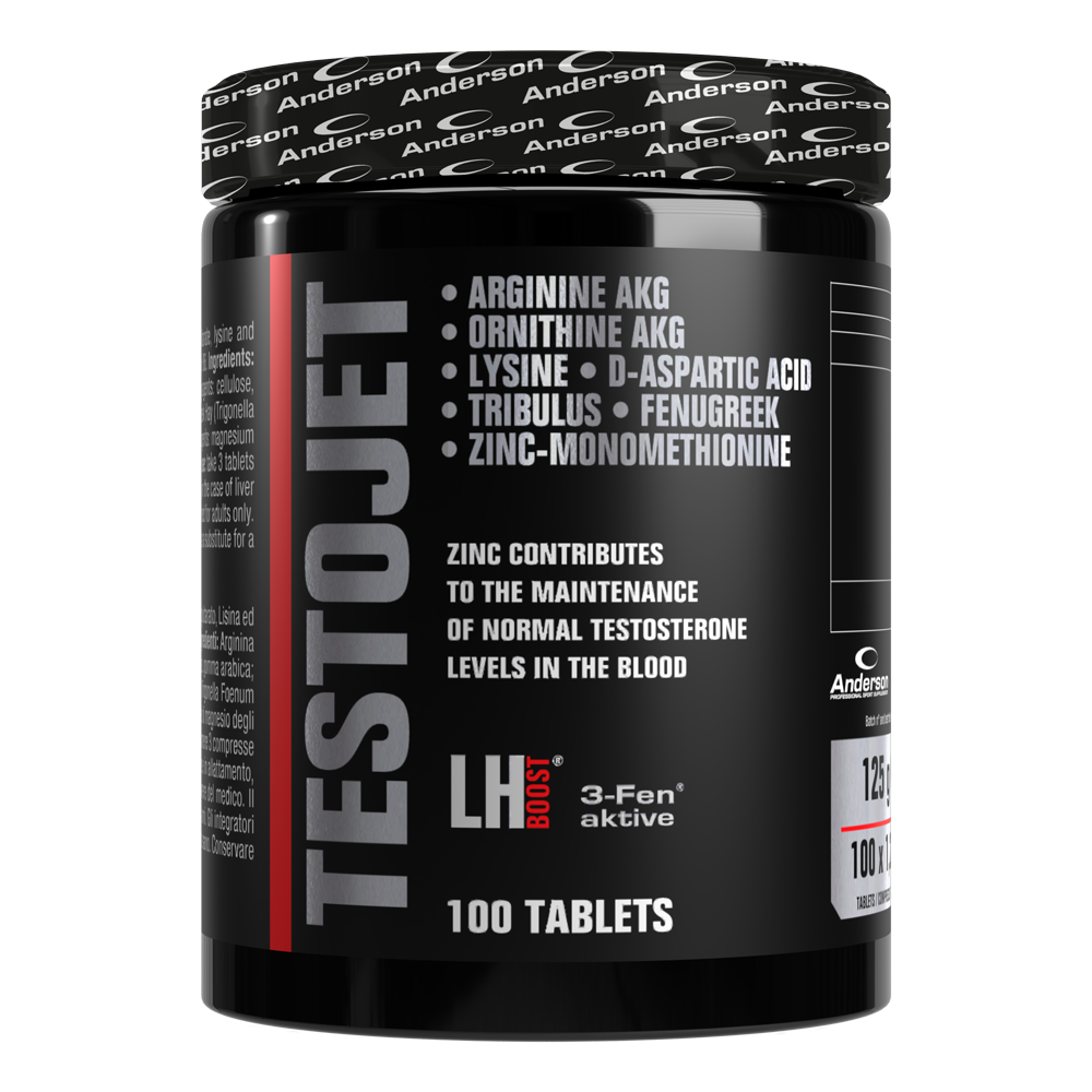 TesToJet è la combinazione degli aminoacidi Arginina/Lisina/Ornitina con Acido D-Aspartico, estratti secchi titolati (Tribulus Terrestris e Fieno Greco) e Zinco contribuisce al mantenimento dei normali livelli di testosterone nel sangue, alla normale fertilità e riproduzione ed alla normale funzione del sistema immunitario.